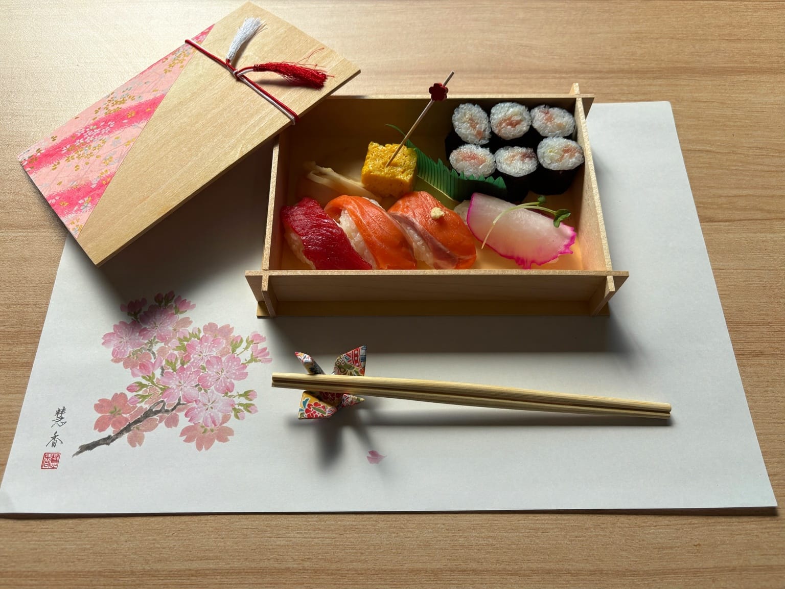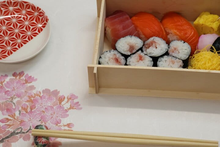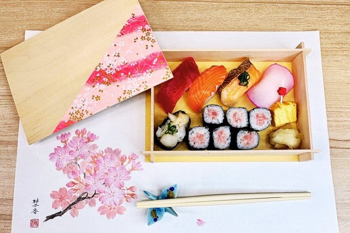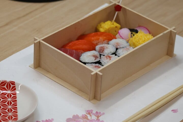 - Make a sushi bento in our original traditional Japanese bento box!
