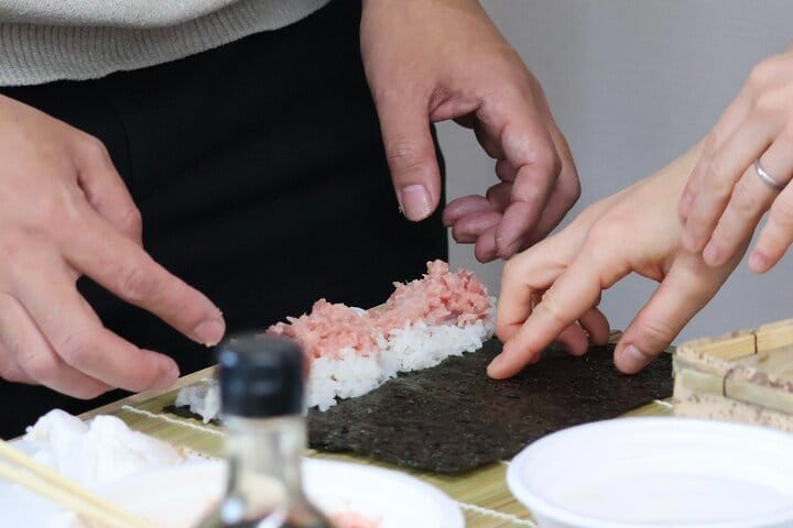 Step into Tokyo’s legendary Tsukiji Fish Market and connect with bento and sushi culture at its source. In this hands-on experience, you will make traditional sushi, featuring fresh, high-quality tuna and salmon, alongside vibrant seasonal vegetable sushi. You will then arrange your creations into a beautifully presented, original sushi bento box.